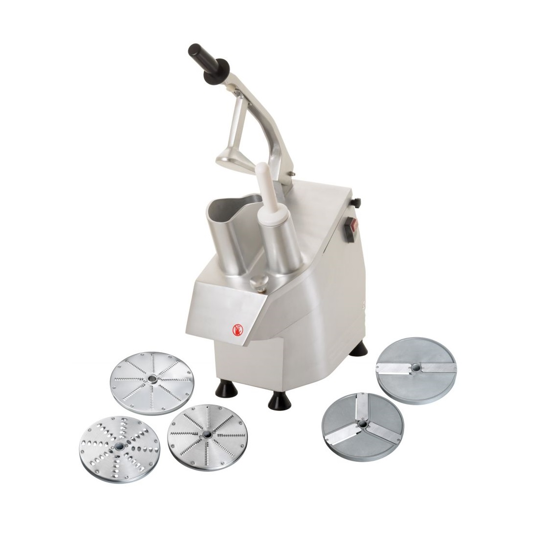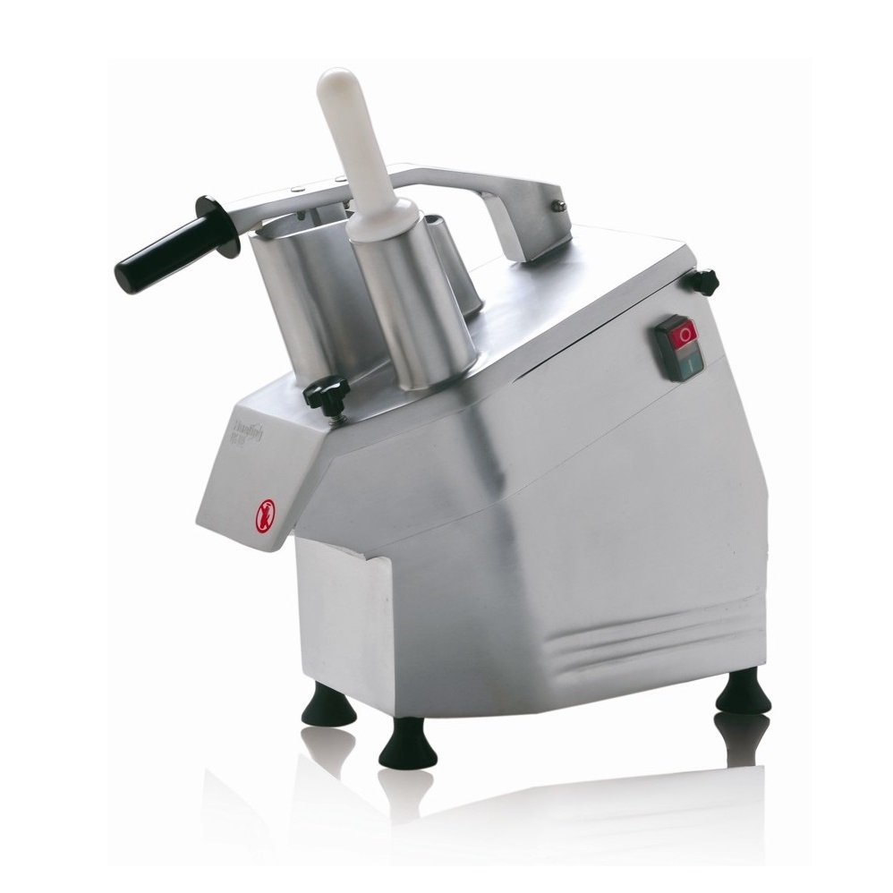 Robot profesional pentru feliat, tocat si procesat legume si fructe. Excelent pentru taierea unor cantitati mari de produse pentru restaurante, cantine, pizzerii. Include 5 discuri : feliere de 2 si 4 mm, razuire de 3, 5 si 7 mm. Cupa mare pentru procesat varza, branzeturi, ciuperci, etc si orificiu mic pentru castraveti, morcovi, dovlecel. Carcasa turnata din aluminiu cu dublu sistem de siguranta: prin surub de strangere si senzor electromagnetic. Maner si picioruse din plastic.